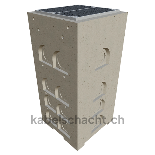Gaine de câbles modulaire, dimensions intérieures 80 x 80 cm, profondeur 200,3 cm, couvercle ECO, largeur intérieure 80 cm et longueur intérieure 80 cm, classe de charge D400, 2 couvercles en acier chromé V2A avec roulettes intégrées, fixation par 4 vis et raccordement au revêtement.
