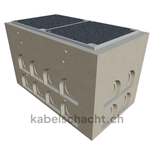 Gaine de câbles modulaire Largeur intérieure 80 x 160 cm Profondeur 102,3 cm Couvercle ECO Largeur intérieure 80 et longueur intérieure 160 cm, classe de charge C250 en acier chromé V2A 2 couvercles avec roulettes intégrées, vissage quadruple et raccordement au revêtement