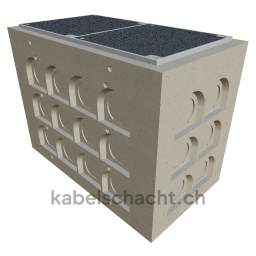 Gaine de câbles modulaire Largeur intérieure 80 x 160 cm Profondeur 126,3 cm Couvercle ECO Largeur intérieure 80 et longueur intérieure 160 cm, classe de charge C250 en acier chromé V2A 2 couvercles avec roulettes intégrées, vissage quadruple et raccordement au revêtement