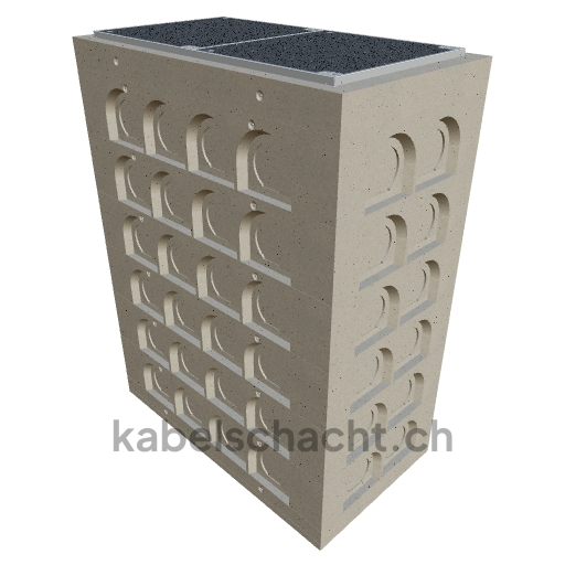 Gaine de câbles modulaire, dimensions intérieures 80 x 160 cm, profondeur 228,3 cm, cache ECO, largeur intérieure 80 cm et longueur intérieure 160 cm, classe de charge C250, en acier chromé V2A, 2 couvercles avec roulettes intégrées, fixation à 4 vis et raccordement au revêtement.