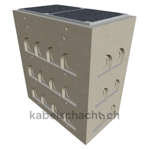 Gaine de câbles modulaire, dimensions intérieures 80 x 160 cm, profondeur 186,3 cm, couvercle ECO, largeur intérieure 80 cm et longueur intérieure 160 cm, classe de charge D400, en acier chromé V2A, 2 couvercles avec roulettes intégrées, fixation à 4 vis et raccordement au revêtement.