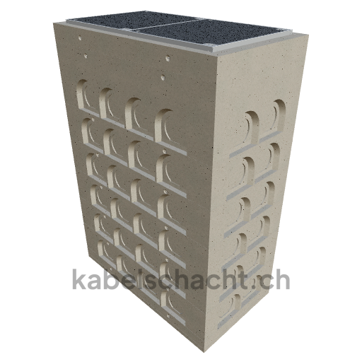 Gaine de câbles modulaire, dimensions intérieures 80 x 160 cm, profondeur 248,3 cm, couvercle ECO, largeur intérieure 80 cm et longueur intérieure 160 cm, classe de charge D400, en acier chromé V2A, 2 couvercles avec roulettes intégrées, fixation à 4 vis et raccordement au revêtement.