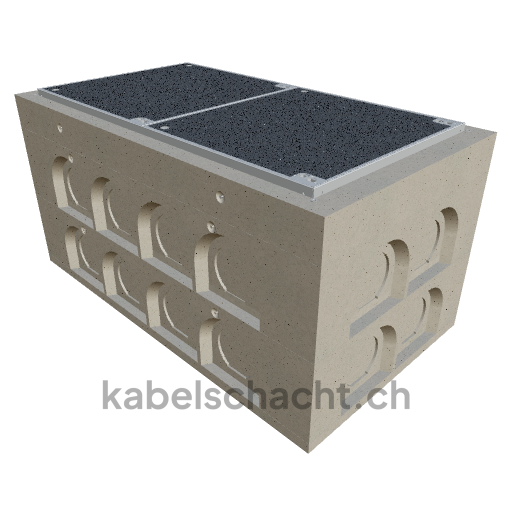 Gaine de câbles modulaire Largeur utile 80 x 160 cm Profondeur 82,3 cm Couvercle ECO Largeur utile 80 cm et longueur utile 160 cm, classe de charge D400 en acier chromé V2A 2 couvercles avec roulettes intégrées, vissage quadruple et raccordement au revêtement