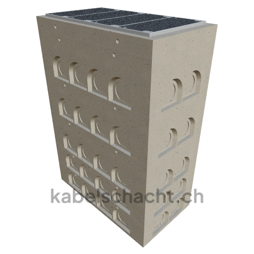 Gaine de câbles modulaire, dimensions intérieures 80 x 160 cm, profondeur 244,3 cm, couvercle ECO, largeur intérieure 80 cm et longueur intérieure 160 cm, classe de charge D400, en acier chromé V2A, 4 couvercles avec roulettes intégrées, fixation à 4 vis et raccordement au revêtement.
