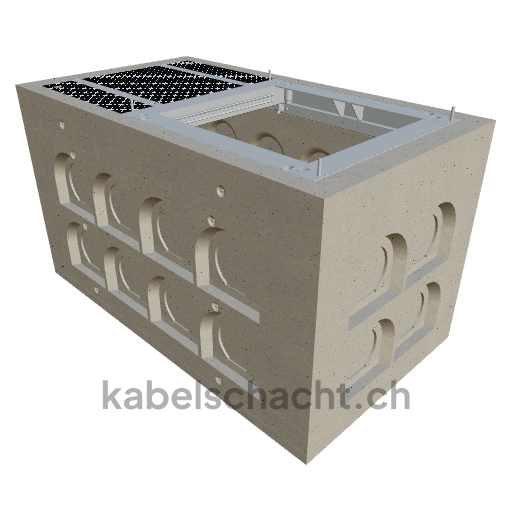 Gaine de câbles modulaire, largeur intérieure 80 x 160 cm, profondeur 92,3 cm, cadre ECO B125 préparé, largeur intérieure 80 cm et longueur intérieure 160 cm, en acier chromé V2A avec adaptateur intégré pour station de recharge, avec sécurité supplémentaire à visser dans l'élément inférieur de la gaine (à fournir par le client).