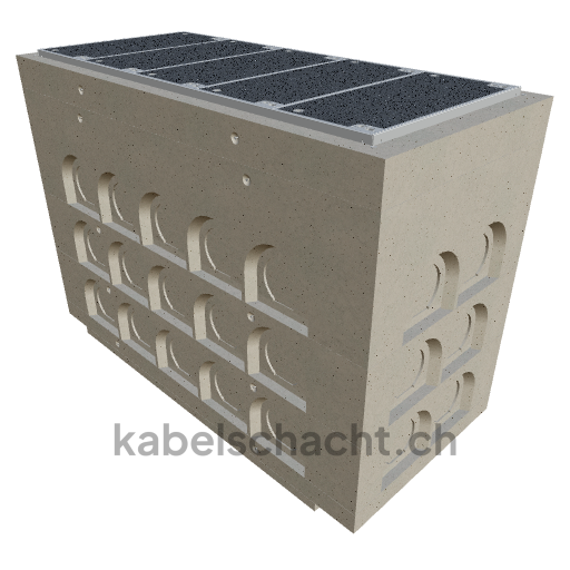 Gaine de câbles modulaire, dimensions intérieures 80 x 200 cm, profondeur 146,3 cm, couvercle ECO, largeur intérieure 80 cm et longueur intérieure 200 cm, classe de charge C250, en acier chromé V2A, 5 couvercles avec roulettes intégrées, fixation par 4 vis et raccordement au revêtement.