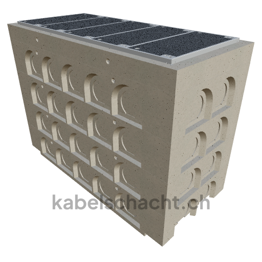Gaine de câbles modulaire, dimensions intérieures 80 x 200 cm, profondeur 150,3 cm, couvercle ECO, largeur intérieure 80 cm et longueur intérieure 200 cm, classe de charge C250, en acier chromé V2A, 5 couvercles avec roulettes intégrées, fixation par 4 vis et raccordement au revêtement.