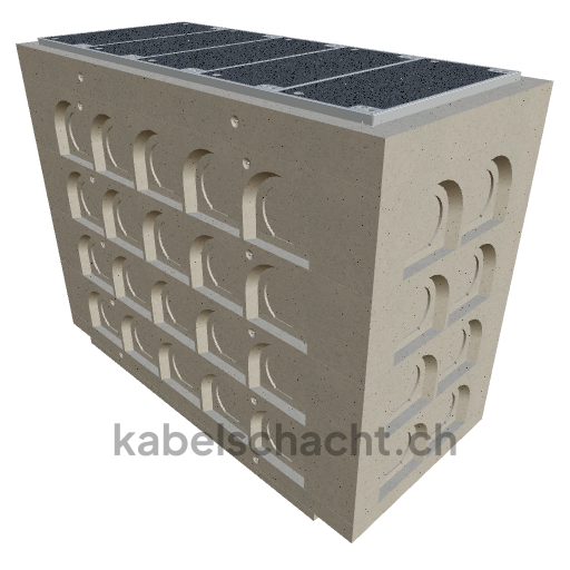 Gaine de câbles modulaire Dimensions intérieures 80 x 200 cm Profondeur 160,3 cm Couvercle ECO Largeur intérieure 80 et longueur intérieure 200 cm, classe de charge C250 en acier chromé V2A 5 couvercles avec roulettes intégrées, avec 4 vis et raccordement au revêtement