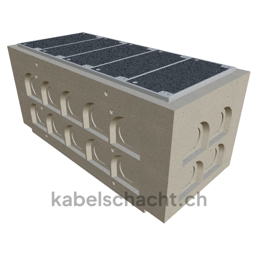 Gaine de câbles modulaire, largeur intérieure 80 x 200 cm, profondeur 92,3 cm, couvercle ECO, largeur intérieure 80 et longueur intérieure 200 cm, classe de charge D400, en acier chromé V2A, 5 couvercles avec roulettes intégrées, avec visserie quadruple et raccordement au revêtement.