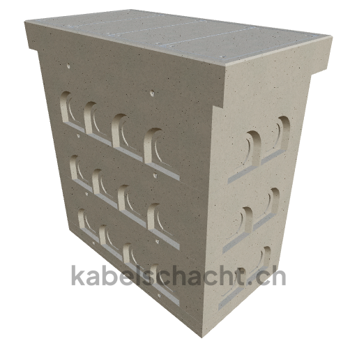 Gaine de câbles modulaire, dimensions intérieures 80 x 160 cm, profondeur 189 cm, couvercle TrapeX, largeur intérieure 80 cm et longueur intérieure 160 cm, classe de charge B125, avec 4 couvercles en acier chromé et 4 ouvertures de levage, y compris 3 traverses amovibles en acier chromé.