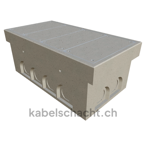 Gaine de câbles modulaire, dimensions intérieures 80 x 160 cm, profondeur 71 cm, couvercle TrapeX, largeur intérieure 80 cm et longueur intérieure 160 cm, classe de charge B125, avec 4 couvercles en acier chromé et 4 ouvertures de levage, y compris 3 traverses amovibles en acier chromé.