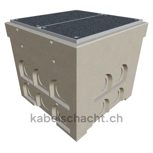 Gaine technique modulaire Dimensions intérieures 100 x 100 cm Profondeur 105 cm Couvercle TrapeX Largeur intérieure 100 et longueur intérieure 100 cm, classe de charge B125 avec 2 couvercles en acier chromé et 4 ouvertures de levage, y compris 1 traverse amovible en acier chromé, bétonnée jusqu'à 3 cm OK
