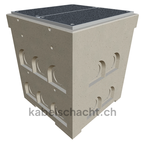 Gaine technique modulaire Dimensions intérieures 100 x 100 cm Profondeur 135 cm Couvercle TrapeX Largeur intérieure 100 et longueur intérieure 100 cm, classe de charge B125 avec 2 couvercles en acier chromé et 4 ouvertures de levage, y compris 1 traverse amovible en acier chromé, bétonnée jusqu'à 3 cm OK