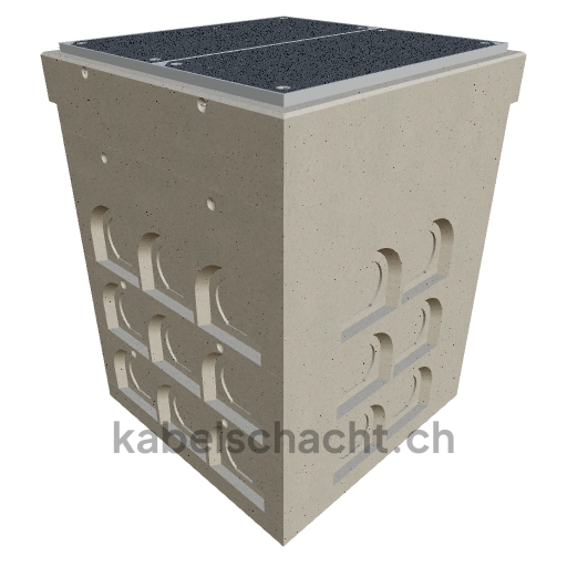 Gaine technique modulaire Dimensions intérieures 100 x 100 cm Profondeur 159 cm Couvercle TrapeX Largeur intérieure 100 et longueur intérieure 100 cm, classe de charge B125 avec 2 couvercles en acier chromé et 4 ouvertures de levage, y compris 1 traverse amovible en acier chromé, bétonnée jusqu'à 3 cm OK