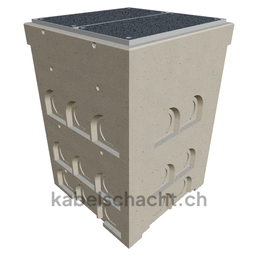 Gaine technique modulaire Dimensions intérieures 100 x 100 cm Profondeur 169 cm Couvercle TrapeX Largeur intérieure 100 et longueur intérieure 100 cm, classe de charge B125 avec 2 couvercles en acier chromé et 4 ouvertures de levage, y compris 1 traverse amovible en acier chromé, bétonnée jusqu'à 3 cm OK