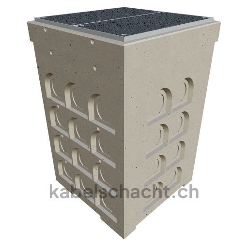 Gaine technique modulaire Dimensions intérieures 100 x 100 cm Profondeur 183 cm Couvercle TrapeX Largeur intérieure 100 et longueur intérieure 100 cm, classe de charge B125 avec 2 couvercles en acier chromé et 4 ouvertures de levage, y compris 1 traverse amovible en acier chromé, bétonnée jusqu'à 3 cm OK