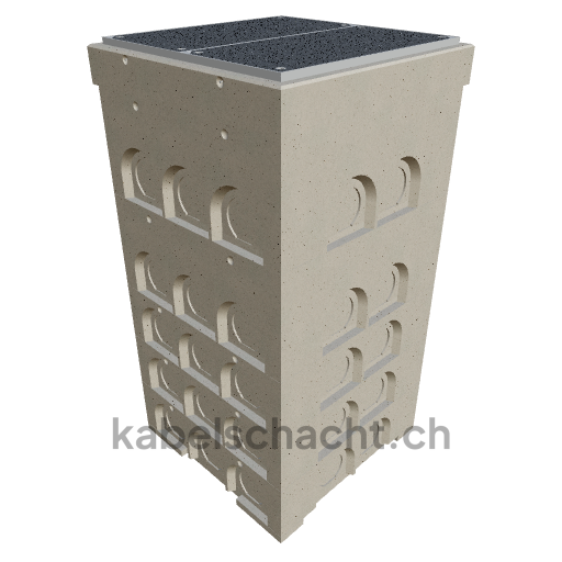 Gaine technique modulaire, dimensions intérieures 100 x 100 cm, profondeur 227 cm, couvercle TrapeX, largeur intérieure 100 cm et longueur intérieure 100 cm, classe de charge B125 avec 2 couvercles en acier chromé et 4 ouvertures de levage, y compris 1 traverse amovible en acier chromé, bétonnée jusqu'à 3 cm OK.