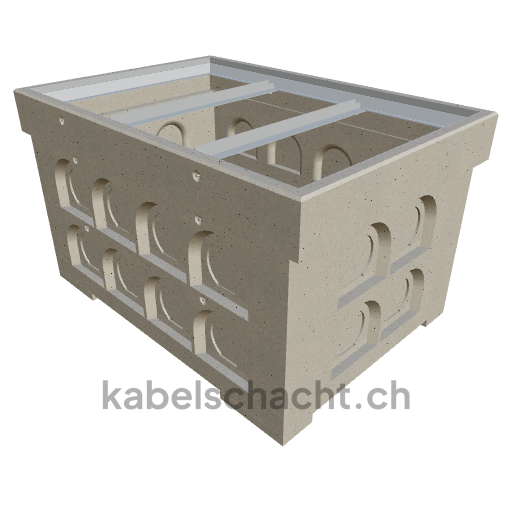 Gaine technique modulaire Dimensions intérieures 100 x 150 cm Profondeur 95,5 cm Cadre TrapeX Largeur intérieure 100 et longueur intérieure 150 cm, classe de charge B125 en acier chromé et béton clair