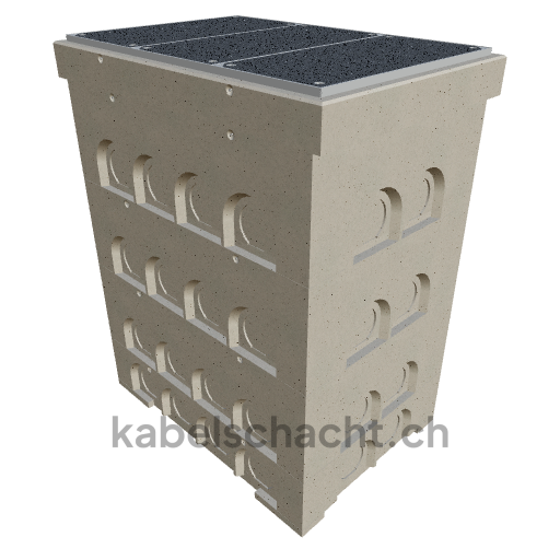 Gaine technique modulaire Dimensions intérieures 100 x 150 cm Profondeur 213 cm Couvercle TrapeX Version avec revêtement Largeur intérieure 100 et longueur intérieure 150 cm, classe de charge B125 avec 3 couvercles en acier chromé et 4 ouvertures de levage, y compris 2 traverses amovibles en acier chromé, bétonné jusqu'à 3 cm OK