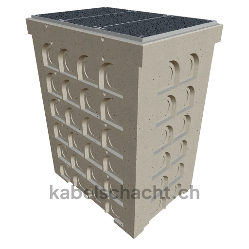 Gaine technique modulaire Dimensions intérieures 100 x 150 cm Profondeur 221 cm Couvercle TrapeX Version avec revêtement Largeur intérieure 100 et longueur intérieure 150 cm, classe de charge B125 avec 3 couvercles en acier chromé et 4 ouvertures de levage, y compris 2 traverses amovibles en acier chromé, bétonné jusqu'à 3 cm OK