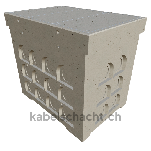 Gaine de câbles modulaire, dimensions intérieures 100 x 150 cm, profondeur 149 cm, couvercle TrapeX, largeur intérieure 100 cm et longueur intérieure 150 cm, classe de charge B125 avec 3 couvercles en acier chromé et 4 ouvertures de levage, y compris 2 traverses amovibles en acier chromé.