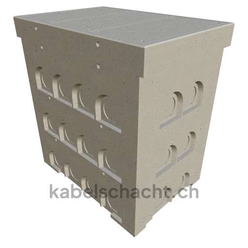 Gaine de câbles modulaire, dimensions intérieures 100 x 150 cm, profondeur 179 cm, couvercle TrapeX, largeur intérieure 100 cm et longueur intérieure 150 cm, classe de charge B125, avec 3 couvercles en acier chromé et 4 ouvertures de levage, y compris 2 traverses amovibles en acier chromé.