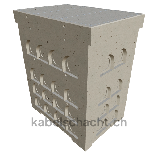 Gaine de câbles modulaire, dimensions intérieures 100 x 150 cm, profondeur 203 cm, recouvrement TrapeX, largeur intérieure 100 cm et longueur intérieure 150 cm, classe de charge B125 avec 3 couvercles en acier chromé et 4 ouvertures de levage, y compris 2 traverses amovibles en acier chromé.