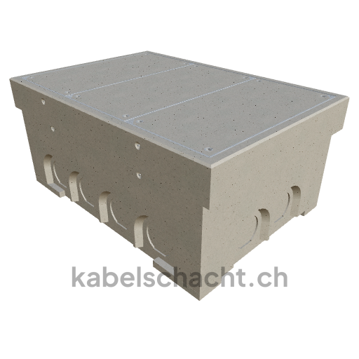 Gaine de câbles modulaire, dimensions intérieures 100 x 150 cm, profondeur 71 cm, couvercle TrapeX, largeur intérieure 100 cm et longueur intérieure 150 cm, classe de charge B125, avec 3 couvercles en acier chromé et 4 ouvertures de levage, y compris 2 traverses amovibles en acier chromé.