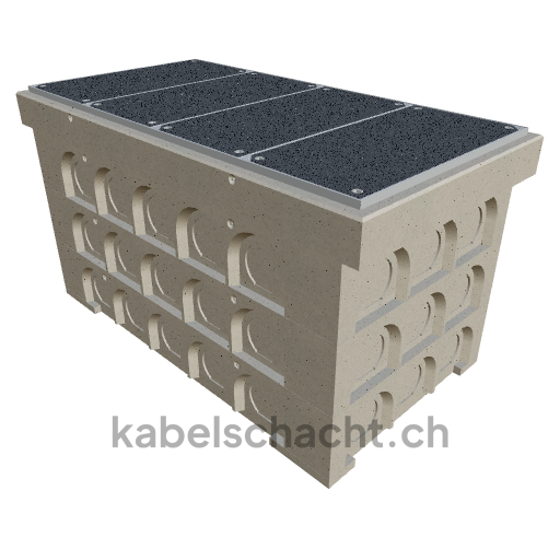 Goulotte modulaire Largeur intérieure 100 x 200 cm Profondeur 119 cm Couvercle TrapeX Version revêtement Largeur intérieure 102 et longueur intérieure 200 cm, classe de charge B125 avec 4 couvercles en acier chromé et 4 ouvertures de levage, y compris 3 traverses amovibles en acier chromé, jusqu'à 3 cm OB bétonné
