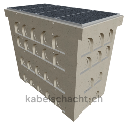 Goulotte modulaire Largeur intérieure 100 x 200 cm Profondeur 193 cm Couvercle TrapeX Version avec revêtement Largeur intérieure 102 et longueur intérieure 200 cm, classe de charge B125 avec 4 couvercles en acier chromé et 4 ouvertures de levage, y compris 3 traverses amovibles en acier chromé, jusqu'à 3 cm OB bétonné