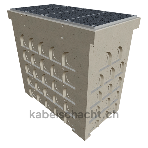 Gaine technique modulaire Dimensions intérieures 100 x 200 cm Profondeur 207 cm Couvercle TrapeX Version avec revêtement Largeur intérieure 102 et longueur intérieure 200 cm, classe de charge B125 avec 4 couvercles en acier chromé et 4 ouvertures de levage, y compris 3 traverses amovibles en acier chromé, jusqu'à 3 cm OB bétonné