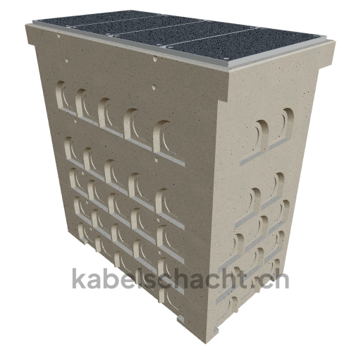 Gaine technique modulaire Dimensions intérieures 100 x 200 cm Profondeur 227 cm Couvercle TrapeX Version avec revêtement Largeur intérieure 102 et longueur intérieure 200 cm, classe de charge B125 avec 4 couvercles en acier chromé et 4 ouvertures de levage, y compris 3 traverses amovibles en acier chromé, jusqu'à 3 cm OB bétonné