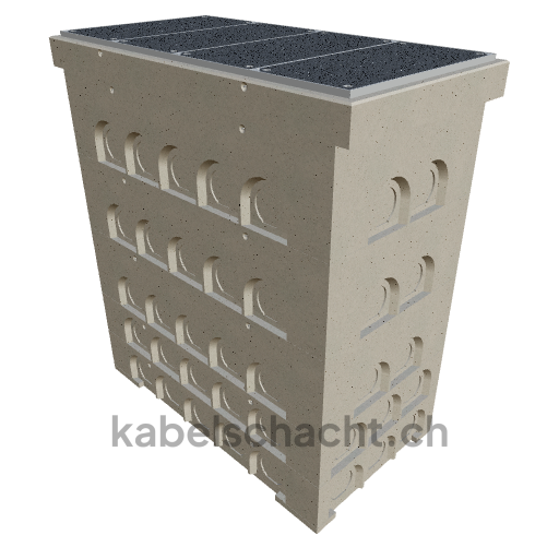 Gaine modulaire Largeur intérieure 100 x 200 cm Profondeur 247 cm Couvercle TrapeX Version revêtement Largeur intérieure 102 et longueur intérieure 200 cm, classe de charge B125 avec 4 couvercles en acier chromé et 4 ouvertures de levage, y compris 3 traverses amovibles en acier chromé, jusqu'à 3 cm OB bétonné