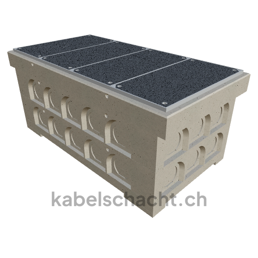 Gaine technique modulaire Dimensions intérieures 100 x 200 cm Profondeur 95 cm Couvercle TrapeX Version avec revêtement Largeur intérieure 102 et longueur intérieure 200 cm, classe de charge B125 avec 4 couvercles en acier chromé et 4 ouvertures de levage, y compris 3 traverses amovibles en acier chromé, jusqu'à 3 cm OB bétonné