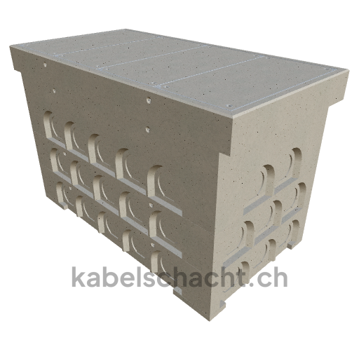 Gaine de câbles modulaire, dimensions intérieures 100 x 200 cm, profondeur 139 cm, couvercle TrapeX, largeur intérieure 102 cm et longueur intérieure 200 cm, classe de charge B125, avec 4 couvercles en acier chromé et 4 ouvertures de levage, y compris 3 traverses amovibles en acier chromé.