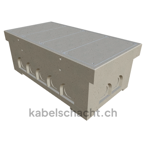 Gaine de câbles modulaire, dimensions intérieures 100 x 200 cm, profondeur 81 cm, couvercle TrapeX, largeur intérieure 102 cm et longueur intérieure 200 cm, classe de charge B125, avec 4 couvercles en acier chromé et 4 ouvertures de levage, y compris 3 traverses amovibles en acier chromé.