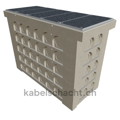 Gaine technique modulaire Dimensions intérieures 100 x 250 cm Profondeur 197 cm Couvercle TrapeX Version avec revêtement Largeur intérieure 100 et longueur intérieure 250 cm, classe de charge B125 avec 5 couvercles en acier chromé et 4 ouvertures de levage, y compris 4 traverses amovibles en acier chromé, bétonné jusqu'à 3 cm OK