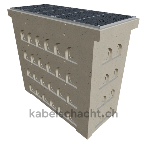 Goulotte modulaire Largeur intérieure 100 x 250 cm Profondeur 243 cm Couvercle TrapeX Version avec revêtement Largeur intérieure 100 et longueur intérieure 250 cm, classe de charge B125 avec 5 couvercles en acier chromé et 4 ouvertures de levage, y compris 4 traverses amovibles en acier chromé, bétonné jusqu'à 3 cm OK
