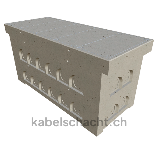 Gaine technique modulaire Dimensions intérieures 100 x 250 cm Profondeur 135 cm Couvercle TrapeX Version avec revêtement Largeur intérieure 100 et longueur intérieure 250 cm, classe de charge B125 avec 5 couvercles en acier chromé et 4 ouvertures de levage, y compris 4 traverses amovibles en acier chromé, bétonné jusqu'à 3 cm OK