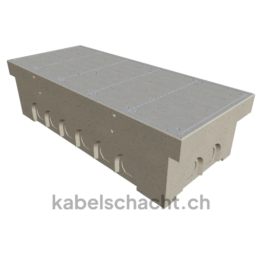 Gaine technique modulaire Dimensions intérieures 100 x 250 cm Profondeur 71 cm Couvercle TrapeX Version avec revêtement Largeur intérieure 100 et longueur intérieure 250 cm, classe de charge B125 avec 5 couvercles en acier chromé et 4 ouvertures de levage, y compris 4 traverses amovibles en acier chromé, bétonné jusqu'à 3 cm OK