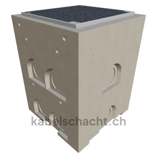 Pozzetto modulare per cavi Dimensioni interne 80 x 80 cm Profondità 122,3 cm Copertura ECO Larghezza interna 80 e lunghezza interna 80 cm, classe di carico C250 1 coperchio in acciaio cromato V2A con rotelle integrate, 4 viti e raccordo per rivestimento